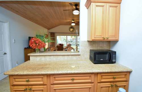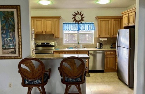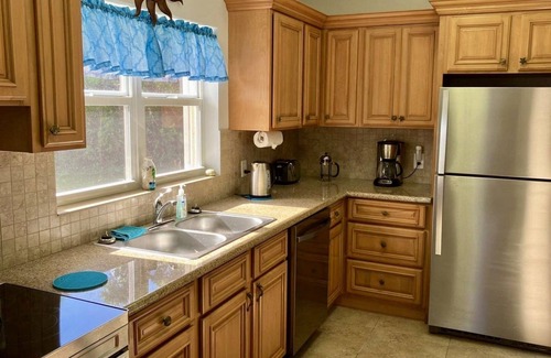 This beautiful air-conditioned bungalow includes 2 queen bedrooms, each with own private ensuite. The queen beds have cool gel memory foam mattress toppers which provides a very comfortable, relaxing night sleep. A great room and kitchen share the central area between the 2 bedrooms. This home offers all latest appliances and amenities as shown in the pictures taken September 2024.