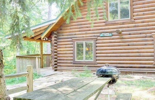 Tucked away on Pickerel Slough, Peaceful Pines is a stunning log home located near spectacular Mirror Lake. Mirror Lake State Park is a 2,179-acre state park featuring a narrow reservoir with steep sandstone sides up to 50 feet tall. Mirror Lake is perfect for hiking, fishing, canoeing/kayaking, picnicking, and swimming. The 3 bedroom 1 bathroom home boasts vaulted ceilings with large windows overlooking the slough and 100-year-old trees. The living room features a gorgeous sandstone wood-burning fireplace for your comfort. Other amenities include WIFI, central heating and A/C, a charcoal grill, a large deck, and a pier going down to the water. Come enjoy the rustic log home and the beauty and peacefulness of Mirror Lake. We provide basic essentials but not items like salt, pepper, oil, or paper towels. Please plan to bring these. The property includes a scenic descent of approximately 70 steps down to the water’s edge, where a private dock awaits—perfect for relaxing or launching a kayak, and fishing though not ideal for swimming.