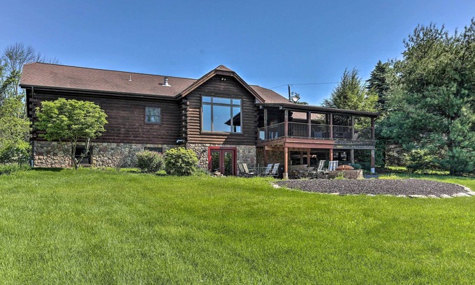 Fire Pit w/ Seating | Furnished Deck | Private Hot Tub | Lake Views