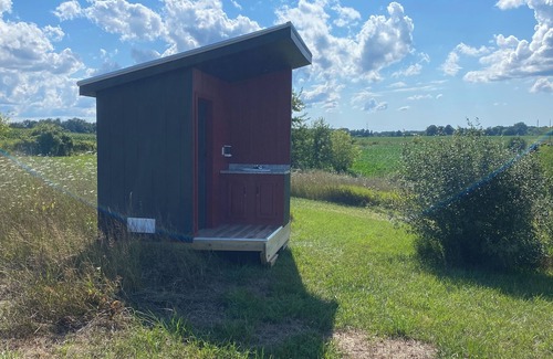 You will be staying on the back corner of our farm and while the site feels very private, you might hear children playing. Our farm is guarded by Yukon, who is a livestock guard dog. He happily protects the gardens from deer and bunnies and keeps the coons away from our chickens. His perimeter is an electric fence that keeps him up by our house. He works mostly at night and so don’t be alarmed if you hear his gruff bark. He’s just warning a nosy deer or raccoon that they aren’t welcome. We welcome his hard work but also understand that not everyone will be ok with what he does. Please do not try and pet him as he is not friendly to strangers.