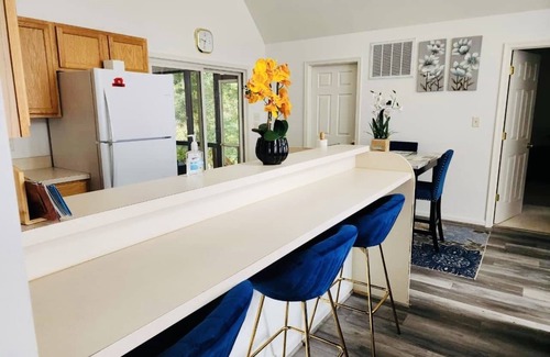 Relax and unwind in an amazing enclosed backyard porch, a grill and fire pit. Stay connected with high-speed internet during your stay. Engulf in comfortable beds, including a king, double, and twin over full, ensuring a peaceful night sleep.