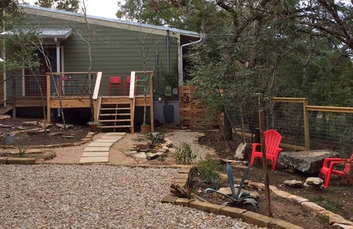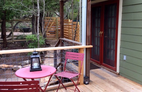 Our property is located just west of downtown Austin and our home and our guest house are situated on 2 1/4 acres. We named it Campo de Paz (Place/Country of Peace) because it a very tranquil location and space. Here, you are just outside the hustle of the city, yet close enough to enjoy the best of both worlds; rejuvenate yourself in the countryside or explore all that Austin has to offer. Better yet, do both! The choice is yours! You are just minutes away from both Lake Austin, Lake Travis, The Hill Country Galleria, and plenty of great restaurants. Relax on your own private deck and watch for deer! Listen for owls and in the spring, you might be lucky enough to hear the whippoorwills. The charming one bedroom (approximately 255 square feet), one bath guest house is furnished with a comfy queen bed, walk-in shower, plenty of closet space, refrigerator, microwave, coffee maker and electric kettle. Gourmet Nespresso coffee and a selection of Tazo teas are provided. Freshly made chocolate chip cookies or other goodies will be waiting for you when you arrive. Free wi-fi is available along with a 32' TV (99 channels).