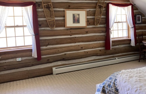 Large King bedroom in an authentic romantic story book log cabin. The offer in for the guest bedroom (not tbe 3 bedrooms). Porch with hammocks and rocking chairs. Shared living room and fireplace. Downtown with a vibrant farmers market and restaurants. Shopping area in Manchester and more restaurants. Hiking trail and swimming hole near.