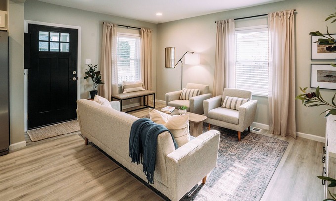 Best-rates for the Peaceful Retreat w/Backyard-3BR-Free Parking starts from $223 per night with includes Wellness Facilities, Internet, Laundry, Air Conditioner, TV, Fireplace/Heating, Child Friendly, Kitchen, Security/Safety, Bedding/Linens StayAndPlay offers fully equipped golf villas, golf hotels, golf resorts, luxury golf cabins, and exclusive golf retreats, making it easier than ever to find your perfect golf escape — ideal for families, peaceful getaways, or pet-friendly retreats with the whole crew.
