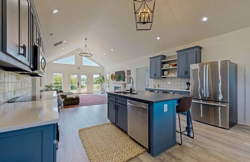 Adventure awaits with an array of outdoor activities at your fingertips. Take advantage of the provided adult and child kayaks, or challenge your friends to a game of cornhole, Yard Jenga, or Spike Ball. For those cozy nights, gather around the brand new paved fire pit or unwind in the hot tub under the stars. The home is dog-friendly, ensuring that your furry companions can join in on the fun.