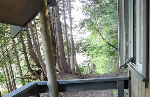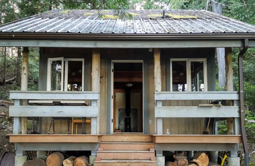 Peaceful rustic cabin in a tucked away location on Gorge Harbour. Great location for kayakers, campers and outdoor enthusiasts. Unplug in nature with lots of trees and tidal inlet access. Simple comforts with propane lighting/stove/fridge (no electricity), outhouse and outdoor shower (no hot water).