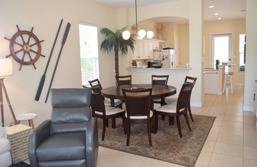 Downstairs you will find a spacious living room, dining room and fully appointed kitchen with breakfast counter, refrigerator with icemaker, microwave, Regular coffee pot, Keurig, dishwasher and laundry area with full-size washer and dryer. In addition to the main living areas downstairs, you will find a half bath as well as a large screened back porch with access from the kitchen. You may also access the garage from the kitchen where you will find plenty of storage area, beach gear (cooler, chairs, mats, etc.), a gas grill, as well as an outdoor cooker (with an assortment of pots) that can be used for all your exterior cooking needs. (Seafood, Crawfish, Fish, Turkey, etc.)