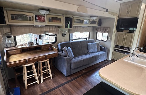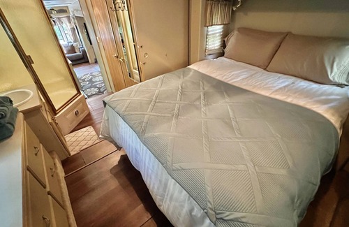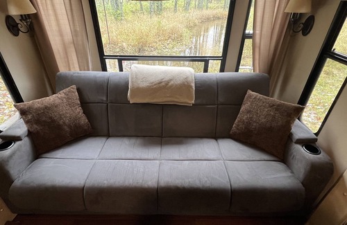 Manistee National Forest River Cabin RV features all the comforts of home. Queen Bed, Twin Sofa Bed, Kitchen and Bathroom. We supply pots and pans, dishes and all utensils and coffee maker and coffee. Room Facilities: View, 25" Flat-screen TV, Air conditioning, Sitting area, Fan, Heating, Cleaning products, Closets, Free toiletries, Bathroom, Bathtub and shower, Tea/Coffee maker, Refrigerator, Microwave, Kitchen, Dining area, Kitchenware.