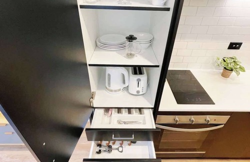 Fully equipped Kitchen, laundry & bathroom, comfy queen-size bed with high-quality linens & towels, guest amenities, unlimited fibre WiFi, smart TV, kitchenwares, compact but everything you need for travel or business trip!