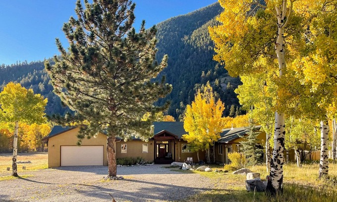 Peaceful & sunny alpine retreat with firepit, patio, fireplace, & amazing views is located in Nathrop. Peaceful & sunny alpine retreat with firepit, patio, fireplace, & amazing views provides accommodation, featuring Child Friendly, among other amenities. This House features Child Friendly, to make your stay a comfortable one.