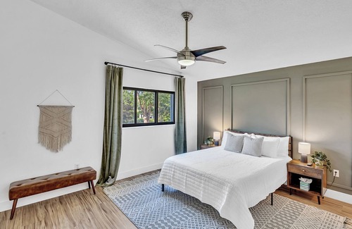 This stunning ranch-style home is the perfect escape for those looking for a relaxing and rejuvenating getaway. With a private pool and lounge chairs, you can soak up the sun and take a dip whenever you like. The bohemian decor adds a touch of whimsy to the space and gives it a unique and charming vibe. Whether you're looking for a romantic escape or a fun-filled family vacation, this rental home has everything you need to make memories that will last a lifetime.