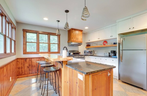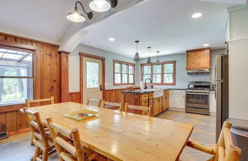 Plan a much-needed getaway to this quiet and secluded 4-bedroom, 2-bathroom vacation rental, where outdoor fun awaits! Located in a serene location on the Boardman River, this cabin boasts a lovely rustic interior, a well-equipped kitchen, and a screened porch. Make a day trip to the Grand Traverse Bay area, explore Traverse City State Park, see the Traverse Tall Ship Manitou, or relax on Clinch Park Beach. Then return home to cozy up around the fireplace!