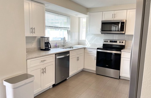 Just like siblings, each has their own unique character and charm. This home appears craftsman style from the front and upon entry through to kitchen and bathrooms but then presents with a flare of beachy decor in the bedrooms. This house has been completely remodeled with completion 12/2022. Kitchen upgraded to white shaker cabinets, stainless steel appliances and quartz counter tops.