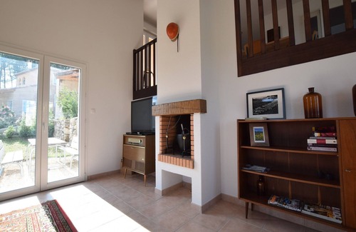 Nestled in the serene village of Joyeuse, this charming villa offers a spacious getaway for up to 6 guests. The ground floor features a well-equipped open kitchen, inviting dining space, a cozy double bedroom, and two bathrooms, including a relaxing bathtub. Step up to the mezzanine where a comfortable living room with a fireplace and TV awaits, perfect for quiet evenings.