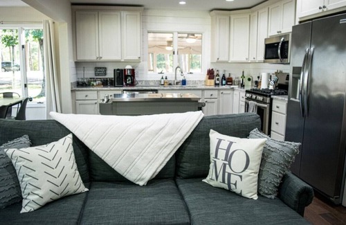 Parkers Creek Cottage has 3 bedrooms and 2 bathrooms. The entire space features modern finishes and appliances.