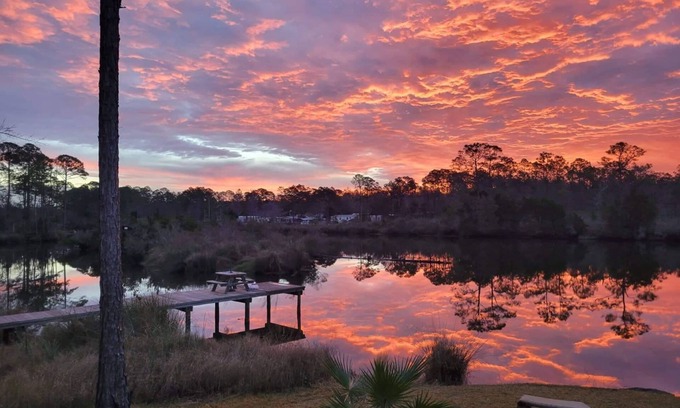 You can boat up the creek to get to the fresh water fishing/swimming and feel like you are an explorer seeing our virgin Southern waterways for the first time (it's so natural), or go down the creek to turn the bend and make it into Wolf Bay. There's so much to see and do.