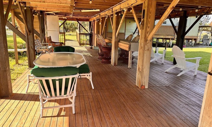 Live "Island Style" in our rural updated 2 BR/1 BA cozy stilt waterfront home on a huge corner lot at the end of a private road. Launch your kayak just out the back door and be out on the St. Martins or Salt River in minutes where you can often see dolphins and catch redfish, snook, seatrout and blue crabs. Clean them at your fish cleaning station. Harvest scallops in the nearby Gulf waters. Kayaks and crab traps are available for your use.
