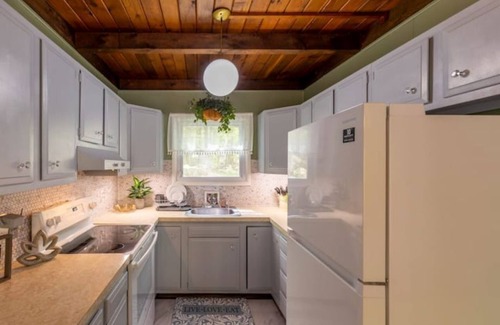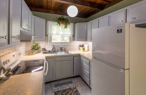 This secluded charming chalet is the perfect retreat for nature lovers looking for a peaceful and serene escape. Located by a picturesque stream, you'll wake up to the soothing sound of water flowing and birds singing. The chalet is nestled in the woods and features a large deck overlooking the stream.The house is steps away from the lake and approximately 6 minute walk to the main beach area.