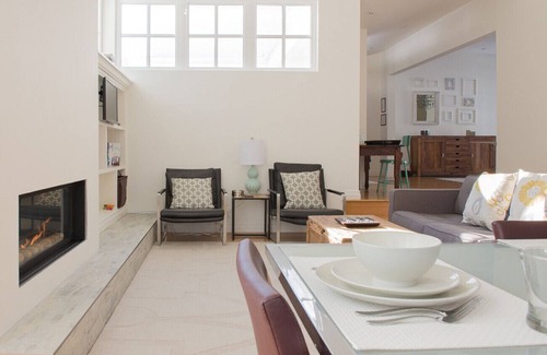 The architect that inspired this home is Hugh Newel Jacobsen. This vacation home is a modern nod to minimalist living and ensuring the convenience of easy living. Open spaces, good acoustics, and easy maintenance.