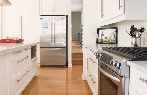 -Stove, oven, fridge, microwave, toaster, and dishwasher