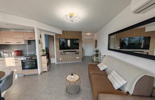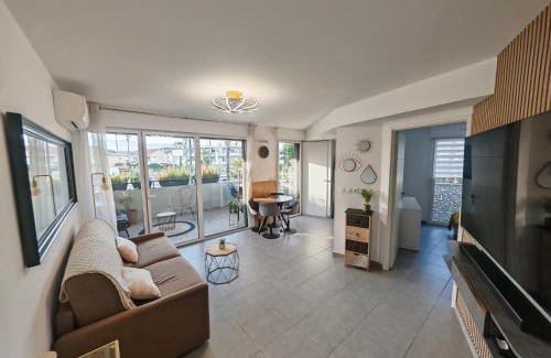 Pearl Beach - Rooftop Pool Seaside offers accommodations in Villeneuve-Loubet, a few steps from Plage de la Batterie and 8 miles from Allianz Riviera Stadium. This beachfront property offers access to a balcony, free private parking, and free Wifi. The apartment provides a rooftop pool, solarium, and an elevator. Accommodation for disabled guests is also available at the property. Providing a terrace and mountain views, the apartment includes 1 bedroom, a living room, satellite flat-screen TV, an equipped kitchen, and 1 bathroom with a shower. Towels and bed linen are provided in the apartment. The property has an outdoor dining area. Russian Orthodox Cathedral is 8.8 miles from the apartment, while Nice-Ville Train Station is 9.3 miles away. Nice Côte d'Azur Airport is 5 miles from the property.