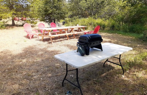 Cottage resort with private beach. Three bedrooms. One full bathroom. Linens & Towels included. Free parking. Club Lounge and Games Room. Bikes, Kayaks, Snorkels. Separate dining area and fully equipped kitchen and a BBQ. Large backyard with lawn games and a fire pit.