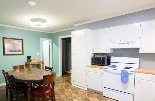 Full kitchen with stove, oven, and cooking basics.