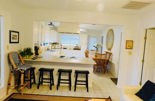 Totally remodeled and updated in 2018. The house is ready to go with all kitchen supplies, bed linens, towels, soap, and much more. Just walk in and relax, everything is taken care of.