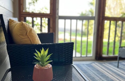 Experience modern rustic charm in this 4-bedroom, 2-bath retreat with granite countertops, a cozy fireplace, and a screened-in porch. The 4th bedroom, a sun-filled converted patio with exposed brick, adds a unique touch. Nestled under pecan trees, enjoy a spacious yard and starry nights just 10 min from Temple. Wi-Fi, Smart TV, and a large sectional ensure comfort. Note: Privacy fence and curtains reduce but don’t eliminate traffic noise. Perfect for work trips or weekend getaways!