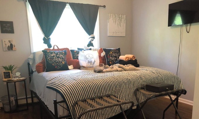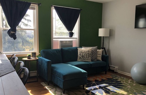 We are in the heart of downtown Peekskill. You can walk everywhere, so no car is needed! You have free street parking, tons of unique and cool amenities, and epic views of the mountains and city skyline. The house is bright, colorfully decorated, filled with sunlight, and chic artistic minimalistic style. Between your room, our tips, and Peekskill's constant events, you will have everything you need to enjoy your Peekskill, Hudson Valley, River Towns, and NY's Wine Country!