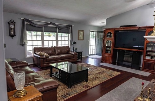 Our Home is located on 8 secluded acres in Oldham Co KY. Just 3 miles from interstate 71 for easy access to Louisville or Cincinnati. also 5 miles to Lagrange KY for shopping & restaurants. Very Private & peaceful surrounded by woods & wildlife. Creek runs along the back side of property. Perfect for reading & relaxing by day & listening to frogs, crickets & owls at night! We have several big owls, deer, squirrels, red foxes, a red tail hawk & often we see a eagle fly over. Our place is perfect for couples, families, reunions & retreats.