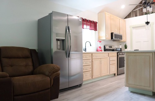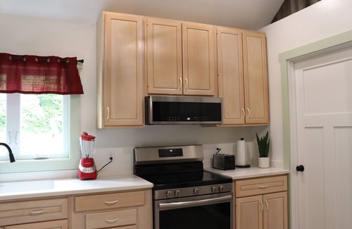 Penns Creek Symphony is a lovely little gem located in Spring Mills, PA. Located on the famous Penns Creek trout fishing stream, you'll find this the perfect spot to relax and unwind between fishing sessions. There's one bedroom with a queen-sized bed that's located in the upper level, and the lower level has a kitchen/living area, bathroom, and a laundry room. Outside is a patio with a hot tub with a lovely view of Penns Creek, and a firepit.