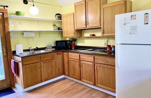 The open floor plan and large windows make this studio feel welcoming and relaxing. A full kitchen with everything you need to make delicious meals. The living room/bedroom space is spacious for reading or watching TV. The bathroom has a stand-up shower and cozy towels.