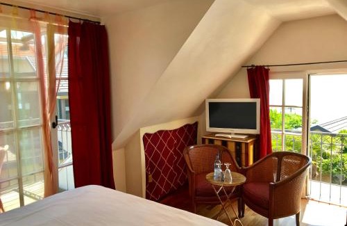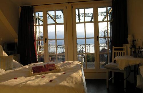 Standing on the shore of Lake Constance, the Pension am Bodensee awaits you with a luxurious spa area. Housed within an elegant, 200-year-old building, the hotel offers spacious suites overlooking the lake, as well as individually furnished double rooms. Active guests can rent speedboats and take waterskiing lessons with nearby local partners. You can also rent bathing boats and bicycles as well as e-bikes from this local partner about 328 ft away. There are other watersport facilities nearby. On lazier days, simply relax on the Pension’s south-facing terrace or go swimming in the lake directly from the property. The Pension am Bodensee also offers a lakeside terrace and a garden with palm trees, where you can enjoy breakfast during the summer.
