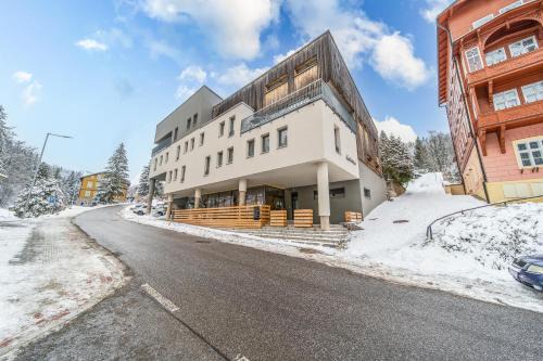 Pension Janský Potok II. is a self-catering accommodations, located in Janske Lazne, 1640 feet from the slopes of the Černá Hora Ski Area. Free WiFi access is available. All apartments feature a flat-screen TV, a dining area with a table, a well-equipped kitchenette, a seating area with a sofa and a desk. The bathrooms are fitted with a bath or a shower and free toiletries. Pension Janský Potok II. offers table tennis and darts. There is also a café. Meeting facilities are at guests disposal and skiing is possible in the surroundings. Private parking is available at the property for a surcharge. The property is located a 15-minute drive away from Lanová dráha Portášk Ski elevator, a 25-minute drive away from Bramberk Ski elevator and a 21-minute drive away from Ski Slope Javor Ski elevator.