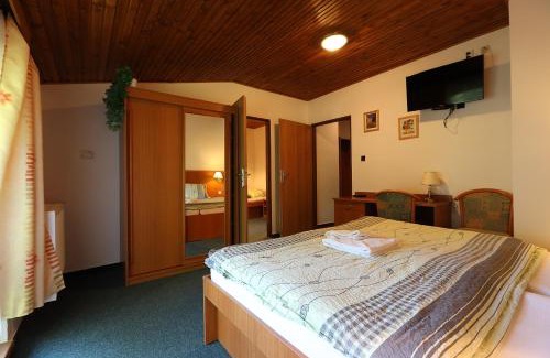 Located in Harrachov, 6.1 miles from Szklarki Waterfall, Pension Venus provides accommodations with a garden, free private parking, a shared lounge and a terrace. The property is around 6.4 miles from Kamienczyka Waterfall, 7.6 miles from Szklarska Poreba Bus Station and 8 miles from Izerska Railway. The property has a tour desk, and currency exchange for guests. Guest rooms at the inn are equipped with a seating area. Featuring a private bathroom, rooms at Pension Venus also offer free WiFi, while certain rooms include a balcony. At the accommodation each room is equipped with a closet and a flat-screen TV. You can play pool, table tennis and darts at Pension Venus, and the area is popular for skiing. Dinopark is 9.1 miles from the inn, while Death Turn is 10 miles away. Pardubice Airport is 71 miles from the property.