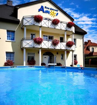 Offering an outdoor pool and free bikes, Pensjonat Amor is located in a quiet area of Mielno, 2953 feet from Jamno Lake and 2297 feet from a beach on the Baltic Sea. Free WiFi access is available. Rooms include a flat screen TV and a private bathroom. Certain rooms feature views of the pool or garden. At Pensjonat Amor you will find a garden with barbecue facilities and a children’s playground with a trampoline. Other facilities offered at the property include luggage storage. The property offers free parking.