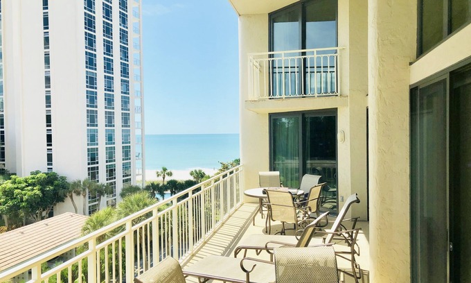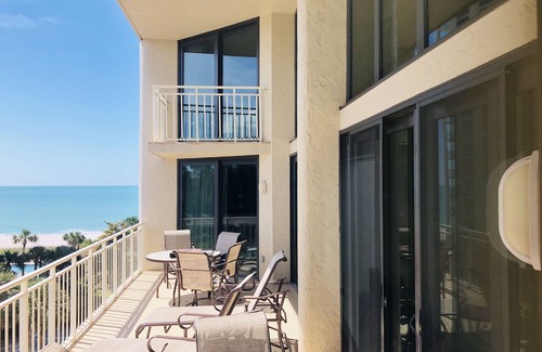 Beautiful partial view of the Gulf of Mexico, extremely quiet beach, all the amenities. This beachfront property is surrounded by everything you could need. Across the street from the golf course, across the street from the grocery stores, this location is optimal for a relaxing week. It is close to beautiful Sarasota for nights trying St. Armand's many dining options or walking the smalls shops.
