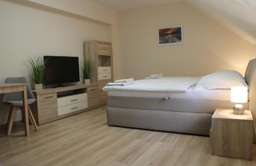 14 miles from Ruzin in Hriňová, Penzión **Anka offers accommodations with access to a fitness room and steam room. Offering a restaurant, the property also has a bar, a wellness packages, and a beauty services. There's a sun terrace and guests can access free Wifi and free private parking. Units come with a private bathroom, and some units at the guest house have a balcony. A buffet breakfast is available at the guest house. Guests at Penzión **Anka will be able to enjoy activities in and around Hriňová, like hiking. Guests at the accommodation can enjoy table tennis on-site, or go skiing or cycling in the surrounding area. Zvolen Castle is 22 miles from Penzión **Anka, while wooden church Hronsek UNESCO is 29 miles from the property. Poprad-Tatry Airport is 73 miles away.