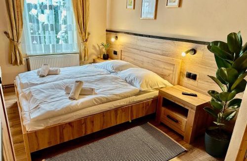 The Manderlak Pension is set in the quiet residential district of Bobrovec, 1.2 mi from the city center and from the Tatralandia Aquapark. This guests house offers transfers to the slopes of the Jasna Ski Resort, located 8.7 mi away in the Low Tatra Mountains. Guests at the Penzion Manderlak can make use of the on-site wellness facilities, which include an outdoor sauna and a hot tub which are available only in the summer season. The massage parlor and a large children’s playground are also provided. Each room features free Wi-Fi, high ceilings, and cozy furniture and curtains. Rooms all come with queen-sized bed and a shower. The restaurant serves pizzas and Slovak cuisine. The adjacent terrace includes an outdoor dining areas and several barbecues. Guests can borrow bikes free of charge or explore on horseback. The receptions sells the Liptov Card, which offers discounts on access to the Jasna Ski Resort as well as the Tatralandia Aquapark. The surrounding region is filled with scenic hiking and cycling trails.