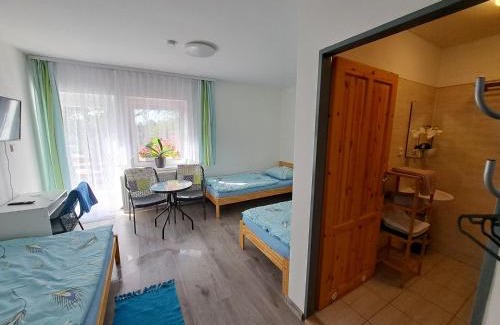 Located in Bochov, 11 miles from Castle and Chateau Bečov nad Teplou, Penzion U Kapličky has accommodations with a garden, free private parking, a shared lounge and a terrace. Featuring a shared kitchen, this property also provides guests with a grill. The inn has family rooms. All rooms in the inn are equipped with a coffee machine. Featuring a private bathroom with a shower and a hairdryer, rooms at Penzion U Kapličky also have free WiFi, while some have a city view. All guest rooms will provide guests with a fridge. Guests at the accommodation will be able to enjoy activities in and around Bochov, like skiing and cycling. Hot Spring is 14 miles from Penzion U Kapličky, while Market Colonnade is 18 miles away. Karlovy Vary International Airport is 11 miles from the property, and the property offers a paid airport shuttle service.
