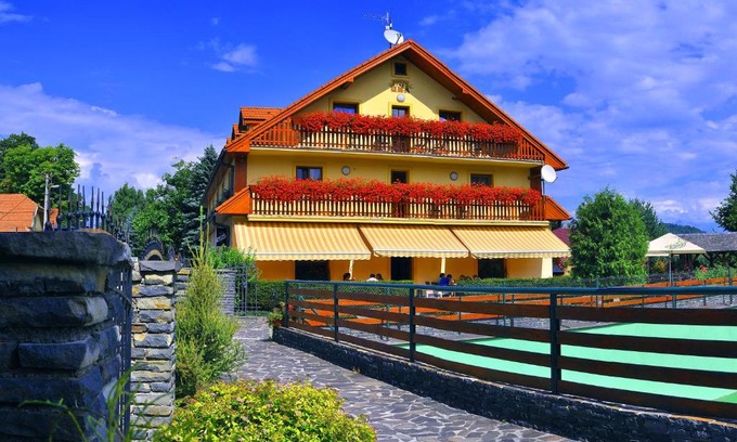 Best-rates for the Penzion UNA starts from $48 per night with includes Business Services, Sports/Activities, Fireplace/Heating, Restaurant, View, Balcony/Terrace, Guest Services, Entertainment, Parking, TV, Skiing, Bar, Child Friendly, Internet, Transportation/Shuttle, Security/Safety, Wellness Facilities, Barbecue/Outdoor Cooking StayAndPlay offers fully equipped golf villas, golf hotels, golf resorts, luxury golf cabins, and exclusive golf retreats, making it easier than ever to find your perfect golf escape — ideal for families, peaceful getaways, or pet-friendly retreats with the whole crew.