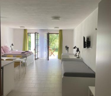 Penzion V Podzámčí Třeboň in Třeboň provides accommodations with a garden and barbecue facilities. This guest house features free private parking and an elevator. The guest house also offers facilities for disabled guests. All units comprise a seating area and a fully equipped kitchenette with various cooking facilities, including a microwave, a fridge, a stovetop, and kitchenware. Each room has a kettle, a flat-screen TV, a safety deposit box, and free Wifi, while some rooms have a terrace and some have garden views. At the guest house, each unit has a private bathroom with a hair dryer and free toiletries. Přemysl Otakar II Square is 16 miles from the guest house, while Castle Český Krumlov is 28 miles from the property. Ceske Budejovice Airport is 19 miles away.