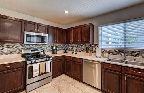 Spacious and cozy two-story vacation home; 3 bedrooms + ample den/loft, 2.5 bathrooms, fully equipped kitchen, beautifully landscaped backyard.