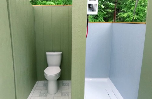 Privacy of our guests is very important to us. The space around your canvas cottage is for your exclusive use. The grassy parking lot is shared with one other guest staying in a canvas cottage on the property, and the giant sloped grassy field between the grassy parking lot and the Lakehouse can be used by all. There is plenty of space between the two canvas cottages so that you will have a peaceful and quiet forest retreat.
