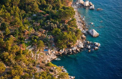 Located in a secluded area among the pine forests, Perdue Hotel has a seafront location and a private beach. The hotel offers air-conditioned suites in bamboo houses with a private balcony and a hot tub. Featuring wooden floors and a straw roof, all suites of Perdue have garden and sea views. Each unit includes a mini-bar, free Wi-Fi and a private bathroom. You can start the day with a rich with a contemporary modern Turkish breakfast prepared with local products, organic fruits, and vegetables from hotel’s own garden. The à la carte restaurant serves unique tastes of Mediterranean and Italian cuisine, and seafood. The pool bar and the lounge bar offer alcoholic and nonalcoholic drinks during the day. The hotel has a professional yoga instructor and a masseuse. You can relax with Gyrokinesis Yoga, or sunbathe on the wooden platform by the seaside. Perdue is 2.5 mi from Kabak Bay and 7.5 mi from Oludeniz Beach. Dalaman Airport is 50 mi away.