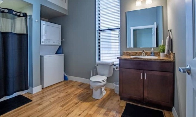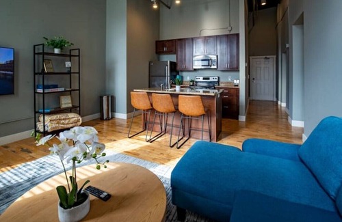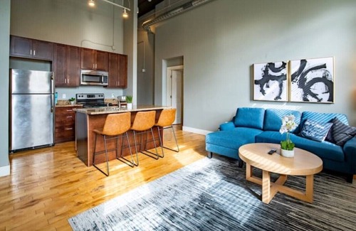 Enjoy a unique loft setting with in-unit washer & dryer and a fully equipped kitchen. We also take sanitation & cleanliness serious. Our unit has HEPA filters in place and we sanitize high touch points on each stay.