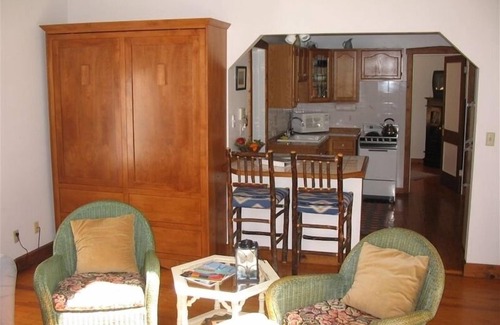 Inside and out, our cottage is the perfect retreat. Nestled amoung 100-foot tall Norway Spruce pines, it is only a block to your own private 'singing sands' beach of Lake Michigan. Union Pier beaches are the softest and widest in SW Michigan! And, it is only a block and a half to great little bakery and breakfast places, coffee and latte shops, unique restaurants and even fine dining. Or you can just stay at the cottage, sit on the front deck, grill your own favorite fare and watch the passer's by.