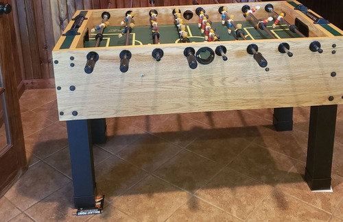 4 Bedrooms, 3.5 baths, Jacuzzi tub in Master, pool table, Foosball table. Bunk room has 3 twin beds, double bed and sofa bed. Other 3 bedrooms have queen beds. Nice new grill outside on the deck, large yard. Just 9 miles to S. Fayetteville.