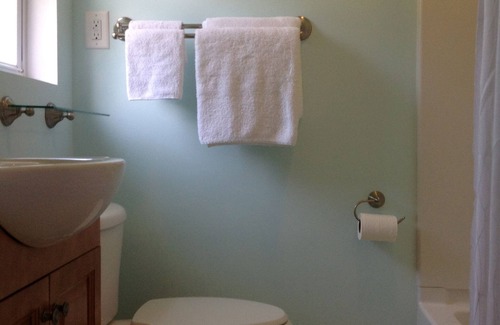 This island house is a very peaceful, fresh and happy getaway. It is in the heart of the town and walking distance to the Ship n Shore and the Lighthouse bakery. It has a comfortably furnished den and large dining area. There are 2 bedrooms and 2 bathrooms, with 1 queen size and 2 twin beds. The kitchen is fully equipped for preparing your meals. It is furnished with a washer and dryer for your use. Outside is a large deck and very large back yard overlooking the shell mounds park.
